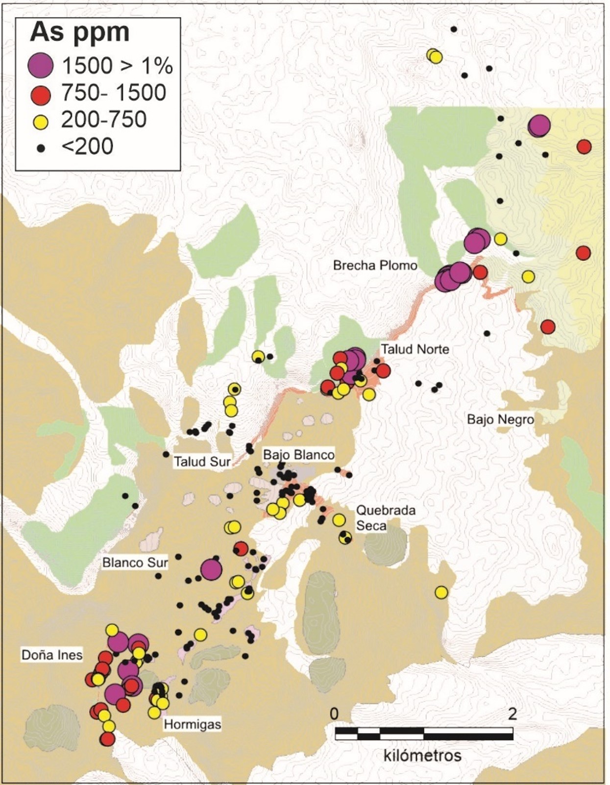 - The tops of epithermal systems can be barren in Au, but at Pedernales there is distinctive strong pathfinder anomalism (Ag-As-Pb-Sb-Bi-Te-Hg)