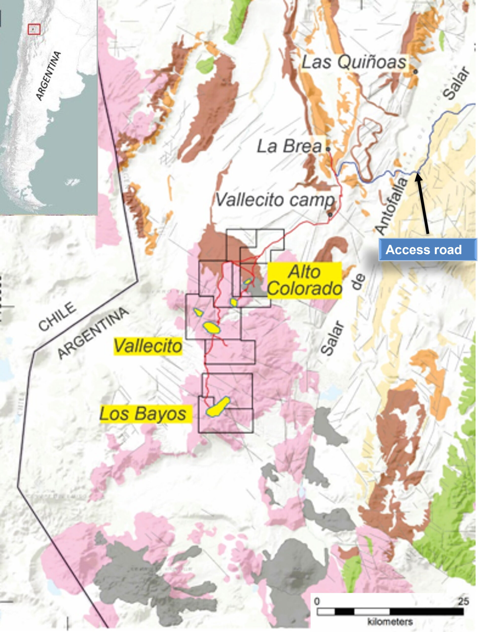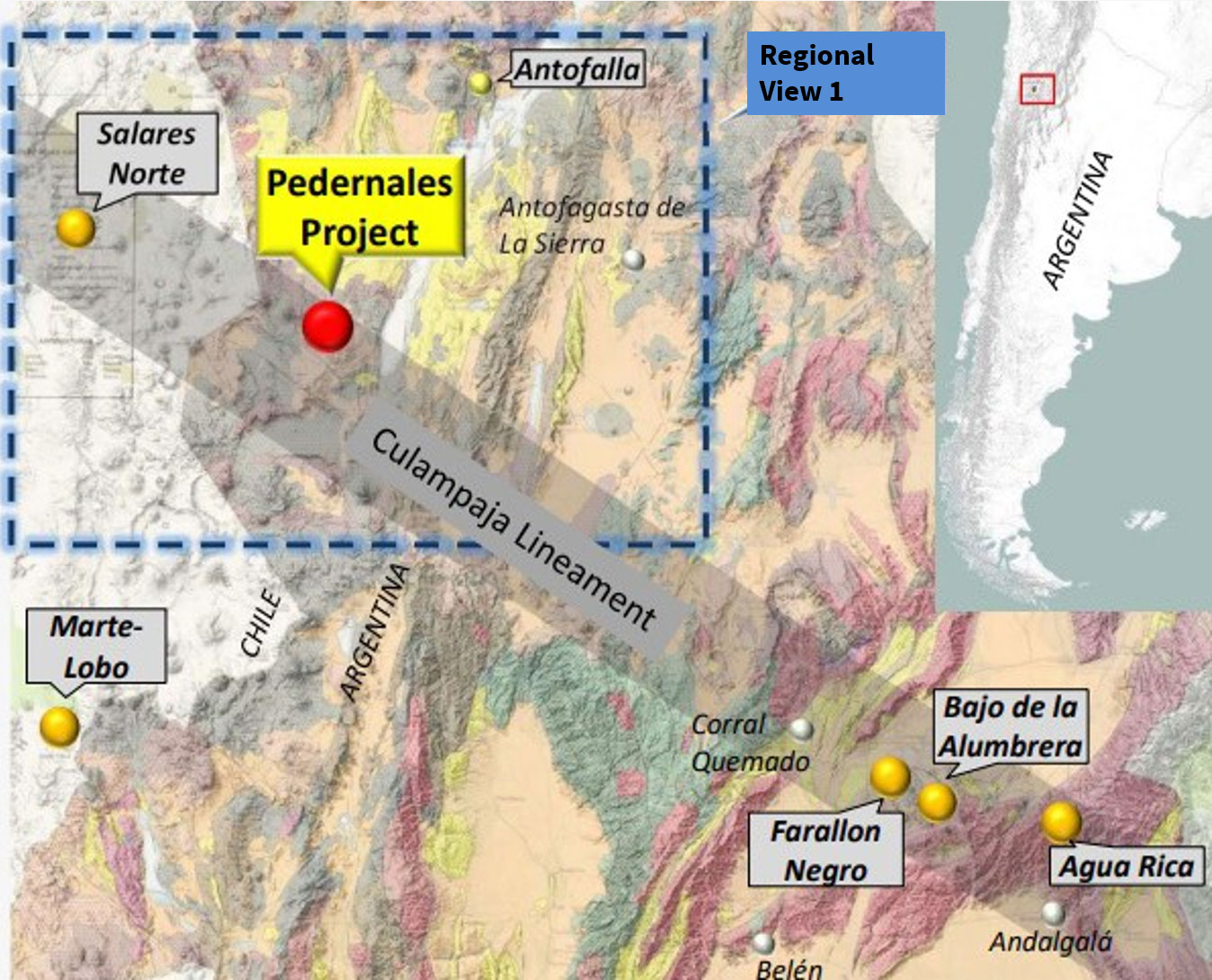 - This lineament is inferred to control the emplacement of porphyry Au-Cu deposits in the Pampean Ranges (including Alumbrera) and epithermal high sulfidation deposits in the Pedernales district